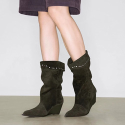 2025 invierno nuevo bohemio plisado Delgado diamante caliente transpirable tobillo punta cuadrada coreano Formal cuero genuino botas occidentales