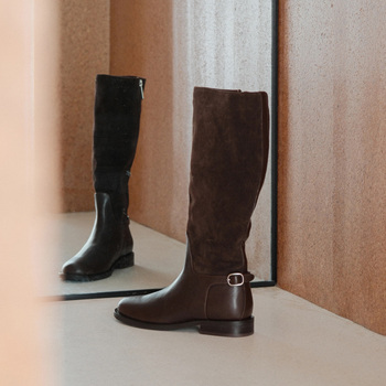 2025 nuevos productos de invierno, zapatos sexis para exteriores para mujer, edición limitada de cuero, punta cuadrada, tacón medio grueso